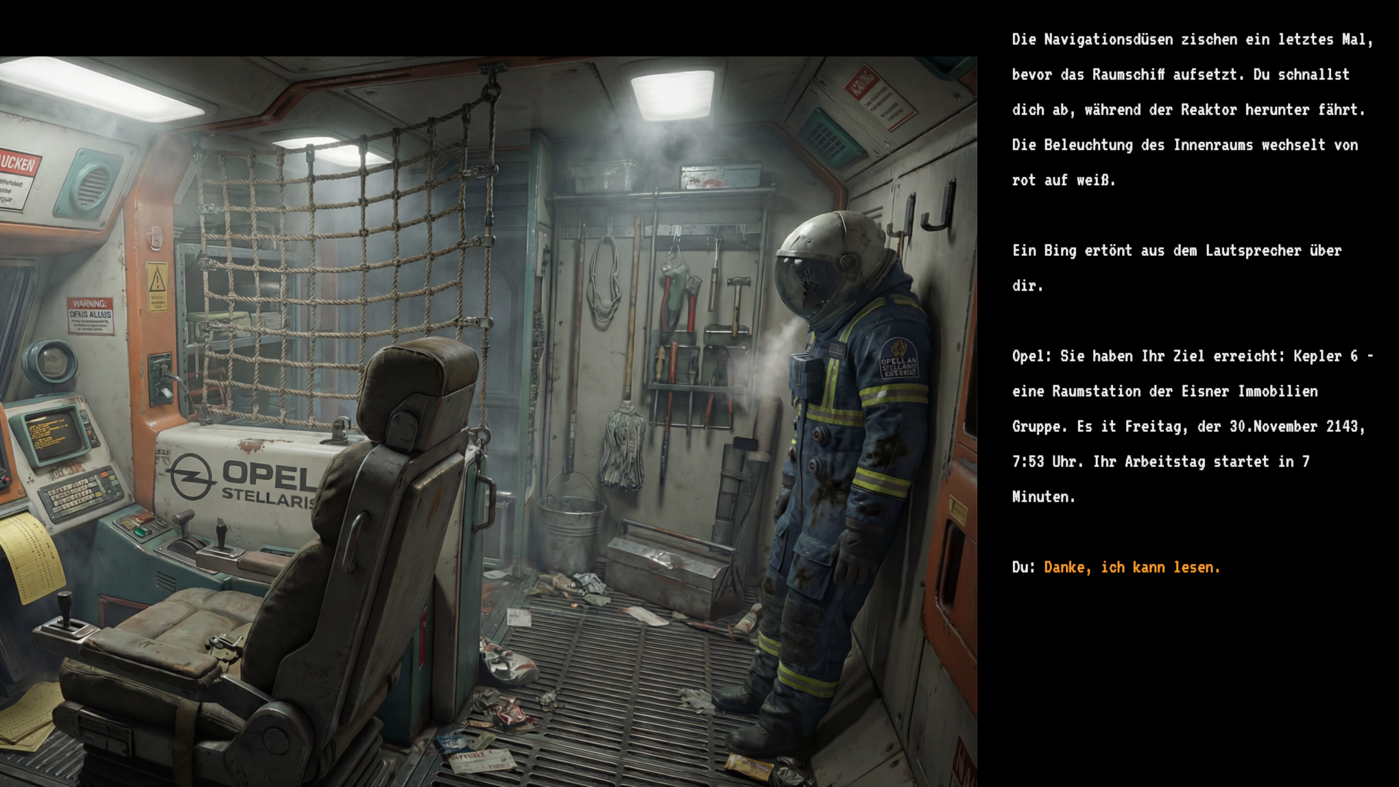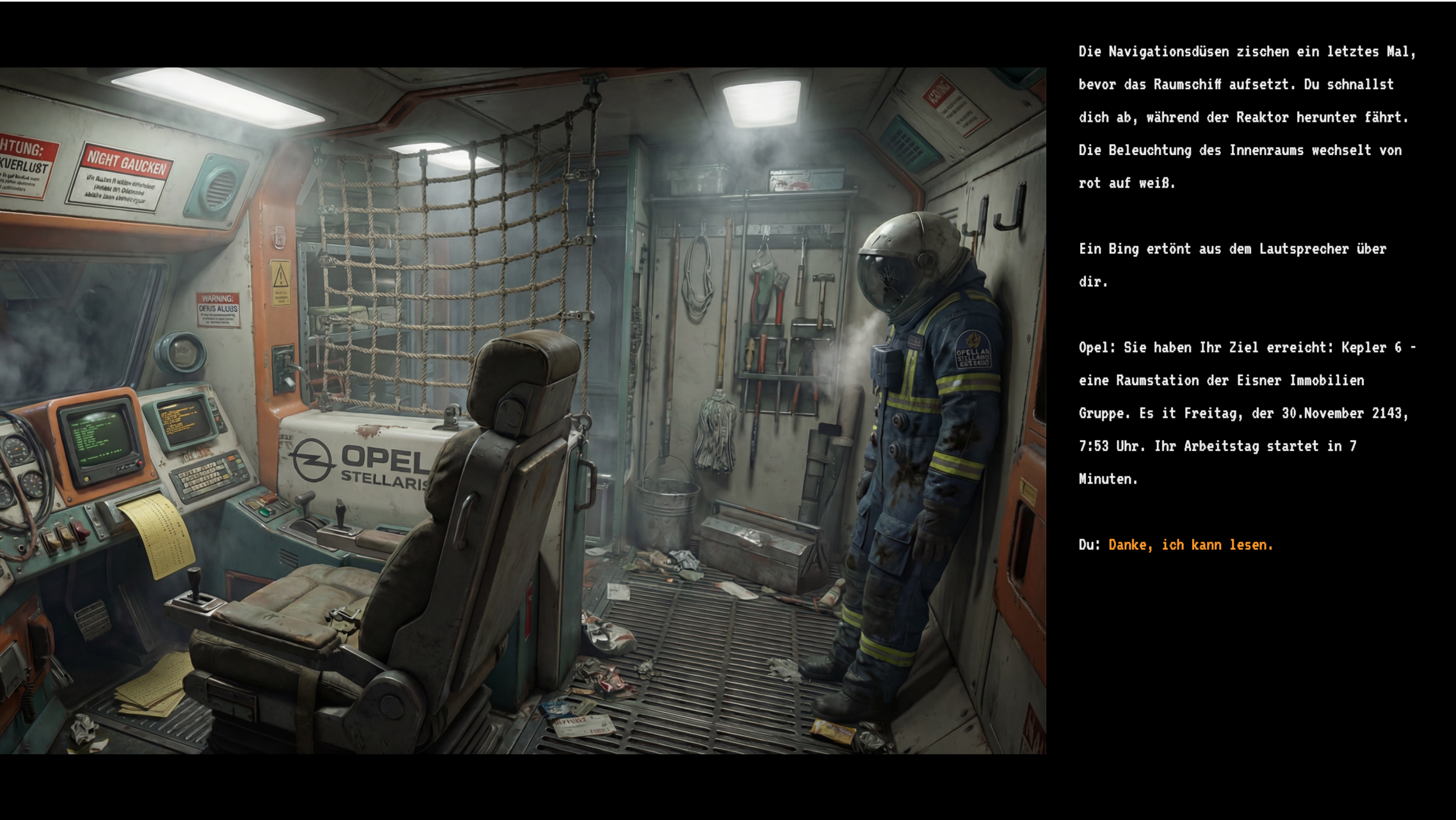 - I like the still images through the eyes of the janitor. I want the player to see the grit and dirt of the station first hand.